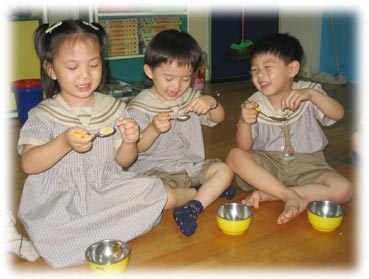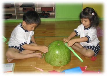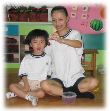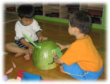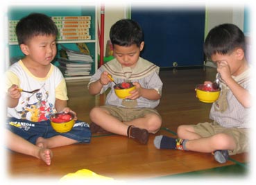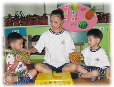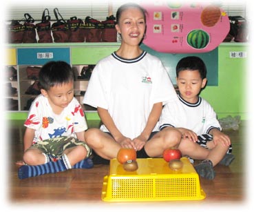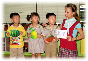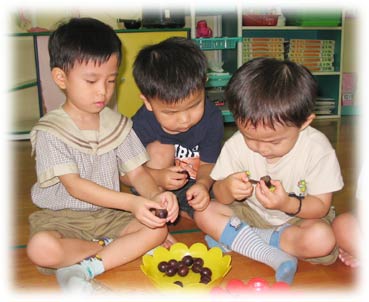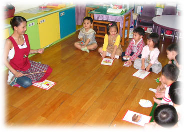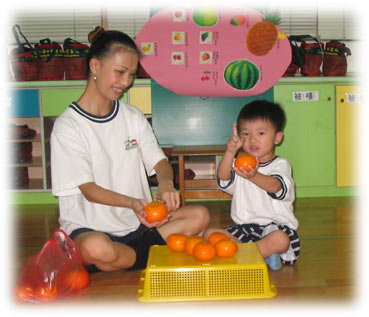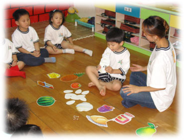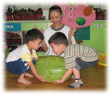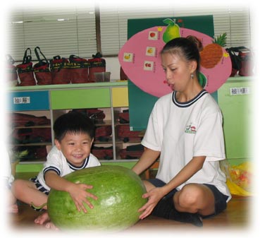 藉由孩子們最感興趣的「蛋糕」引導幼兒認識食物的種類…。