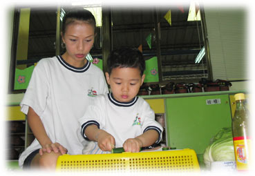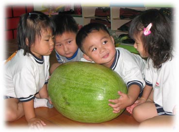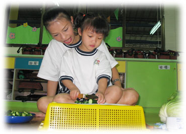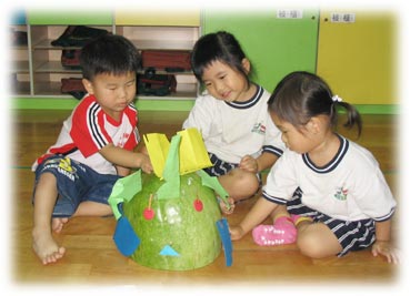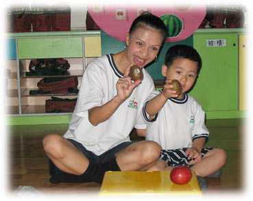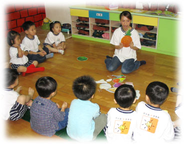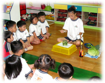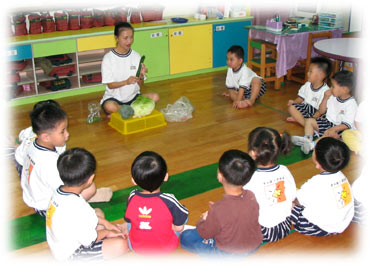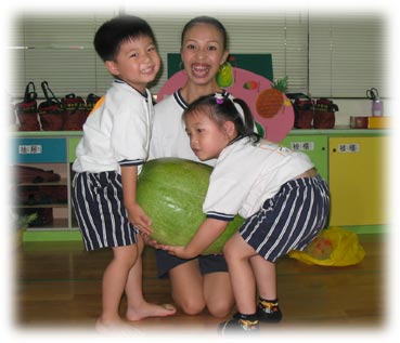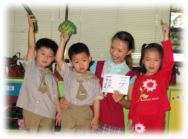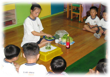 由簡單的分類中發現圖卡裡沒有蔬菜類,於是請孩子們自由決定是否願意帶家中的蔬菜類到校與大家分享。