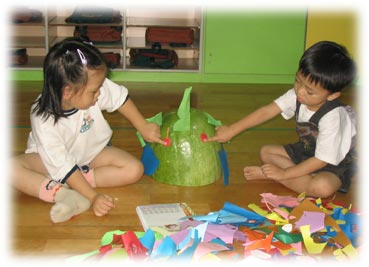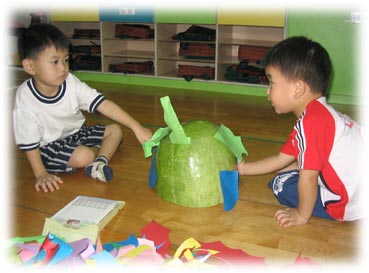 因此,決定讓孩子們挑戰一點高難度的語言練習,我們將透過圖卡來改編已教過的"我最愛吃"兒歌內容:「胖胖的老爸愛肉包」孩子們選了自己愛吃的圖卡將句子改成…