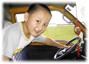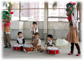 在採購完年貨回園的途中我們聽到有人在撥放舞獅的音樂,繹鉦說:「這是咚咚鏘的歌!」 |