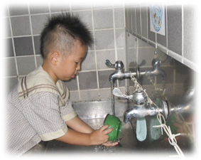 東霖說:「擦桌子要小心衣服,不可以濕搭搭喔!會感冒。」 |