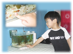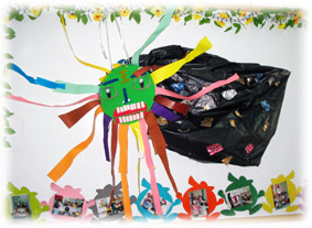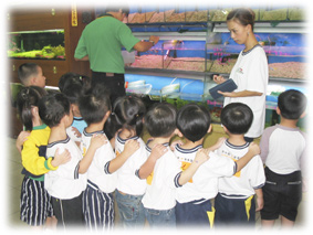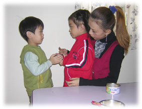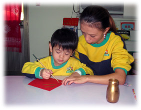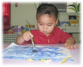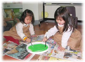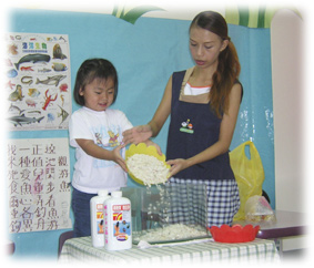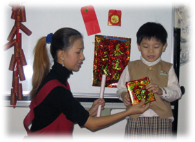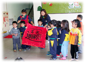 過新年不外乎要貼春聯,因此我們有寫個人的小春聯(春)(年年有餘)以及團體的超級大春聯(招財進寶)讓小朋友們度過一個難忘的∼年。 |