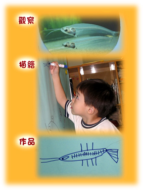 透過討論與想像,孩子們刻畫出心中的年獸可怕模樣,再藉由遊戲讓小朋友更能記住年獸怕些什麼? |