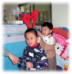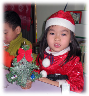 融融、繹鉦說:「我是聖誕樹,哈哈哈!」 |