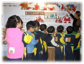 結束聖誕節後緊接而來的是咱們的中國年,從發現日曆紙一張一張變少了,從中引導小朋友認識各種日曆、月曆和年曆,並試著製作一張年曆。 |