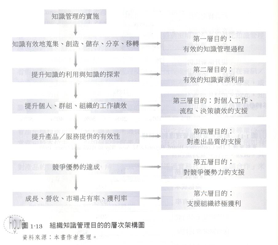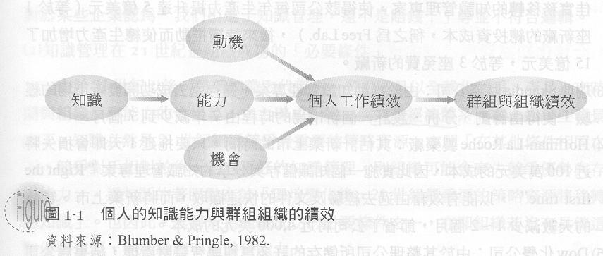 - 知識會影響企業契機之掌握、回應速度、產品上市時間等最重要的存活能力:企業知識管理的績效最直接影響的企業績效包括:創新能力、掌握商機能力、快速反應環境變動的能力、內外部協調能力、內部流程的有效性及商品上市的速度等。