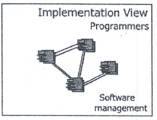 Describes the organization of static software modules (source code, data files, components, executables, and so on) in terms of packaging and layering and configuration management.