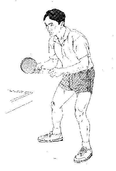 5. 準備姿勢時全身一定要放鬆,肩部、肘部、膝部等都不要過度的用力,且雙手肘部要保持直角狀態,並將球拍置於腹部與胸部之間,以備揮拍擊打來球。