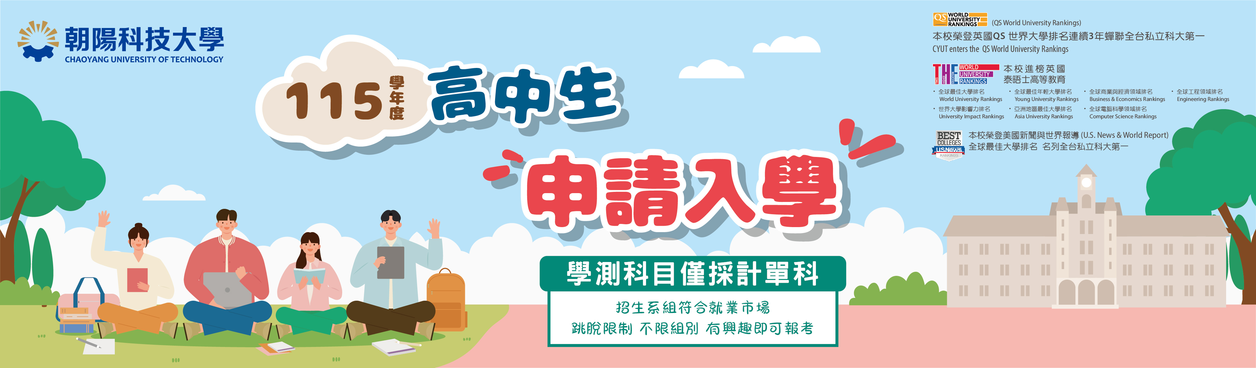 朝 陽 科 技 大 學 高 中 生 申 請 入 學 資 訊 公 告 |
